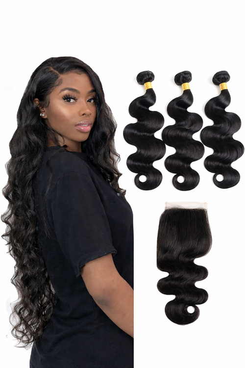 Brazillian body Wave Human hair bundles-100% raw virgin Extensions natural Black -Soft thick long-lasting (12,14,16+1 closure 4*4